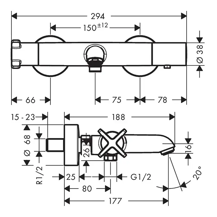 Axor Citterio E Термостат для ванны c вентилем, излив 17,7 см, цвет: шлифованная латунь 36140950