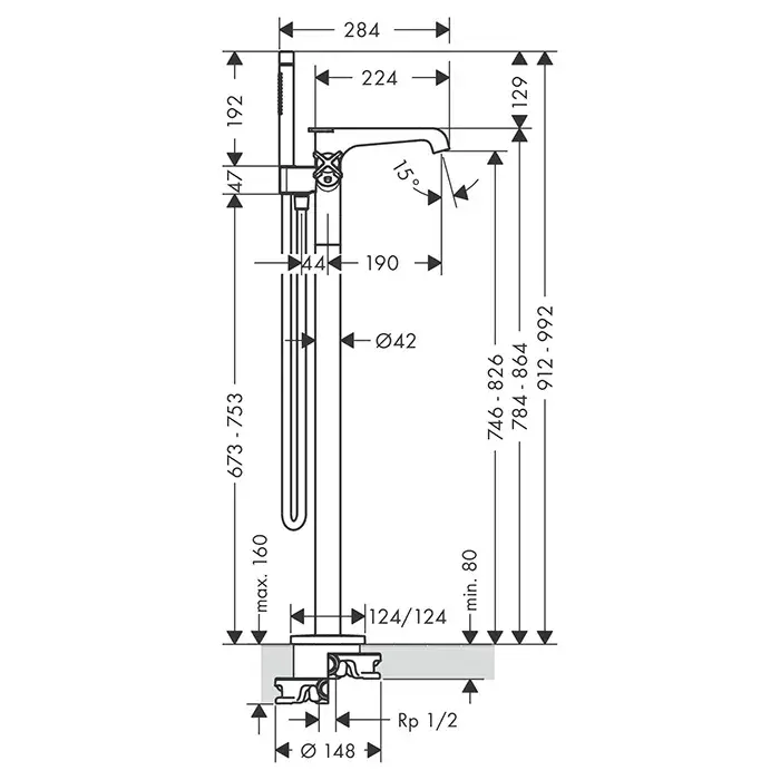 Axor Citterio E Термостат для ванны напольный, с ручным душем "палочка", цвет: шлифованная латунь 36416950