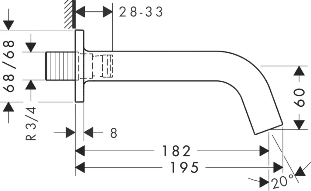 Длина излива, см