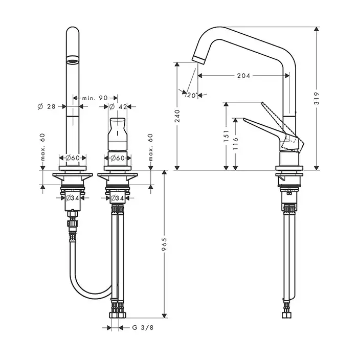 Axor Citterio M Смеситель для кухни с выдвижным изливом, однорычажный, на 2 отв., цвет: нержавеющая 34824800