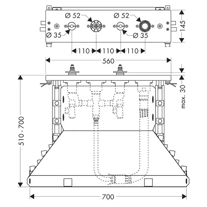 Axor Citterio Скрытая часть смесителя для ванны, на 4 отверстия, монтаж на плитку 15481180