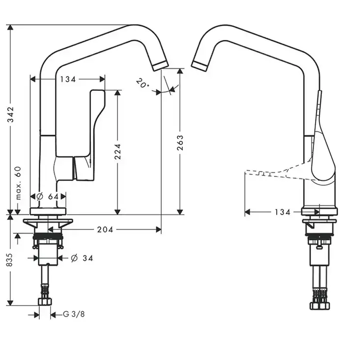 Высота излива, см