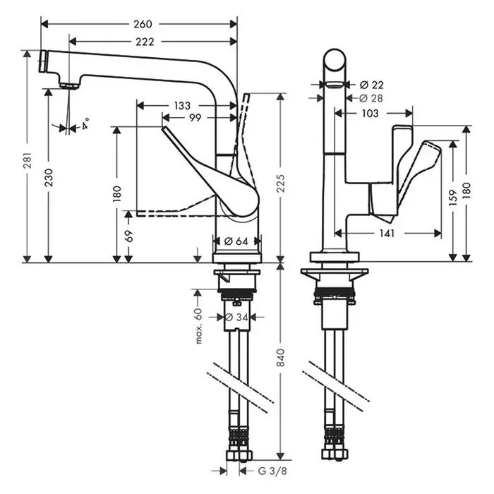 Соединительные шланги G ⅜, Регулируемое ограничение температуры, Встроенный клапан обратного тока во