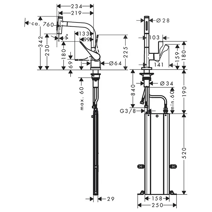 Высота излива, см