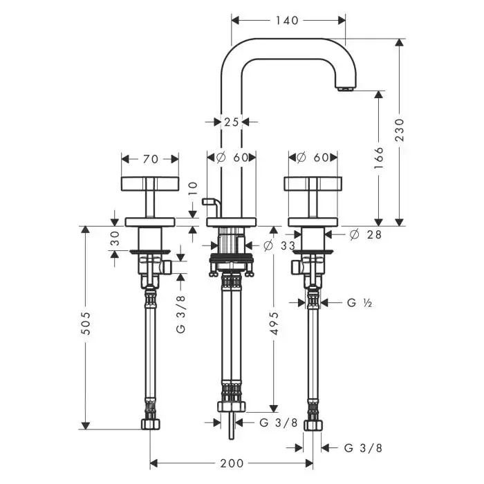 Axor Citterio Смеситель для раковины двухвентильный на 3 отверстия с донным клапаном, цвет: хром 39133000