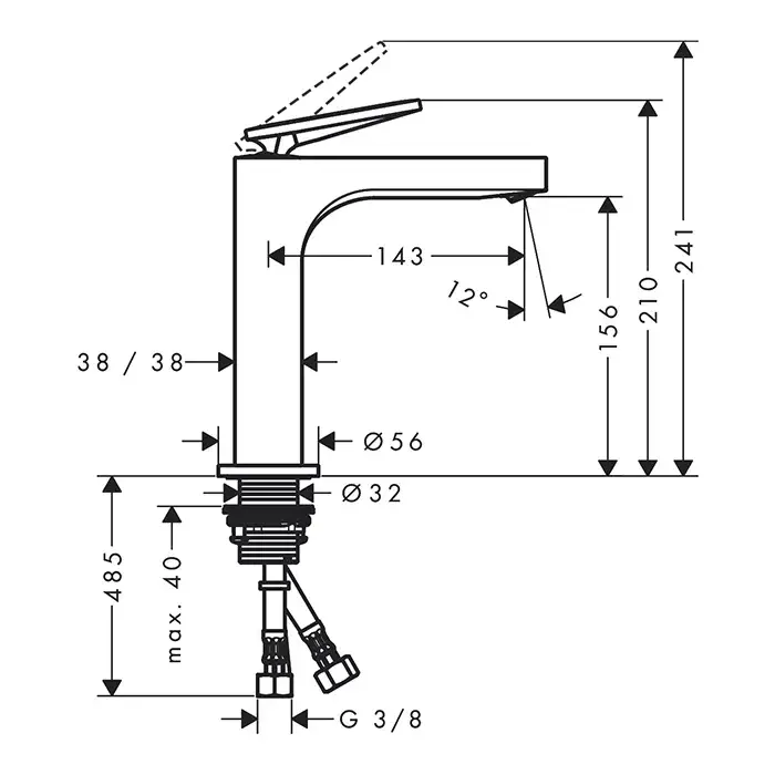 Высота излива, см
