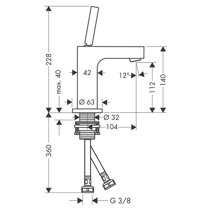 Axor Citterio Смеситель для раковины однорычажный на 1 отверстие с донным клапаном, цвет: хром 39018000
