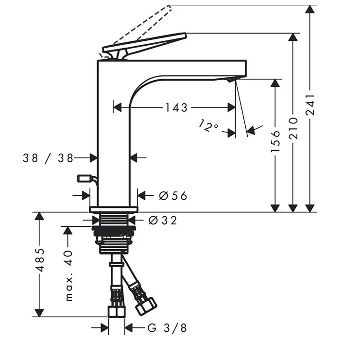 Axor Citterio Смеситель для раковины однорычажный на 1 отверстие с донным клапаном, цвет: хром 39071000