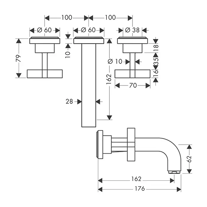 Axor Citterio Смеситель для раковины встраиваемый внеш. часть, с дон. клап., цвет: шлифован. никель 39313820