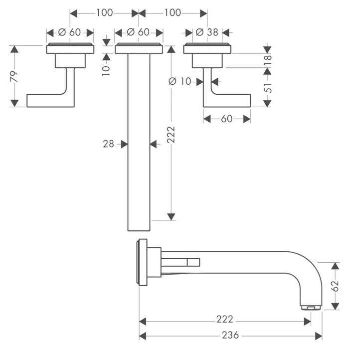 Axor Citterio Смеситель для раковины встраиваемый внешняя часть, с донным клапаном, цвет: хром 39147000