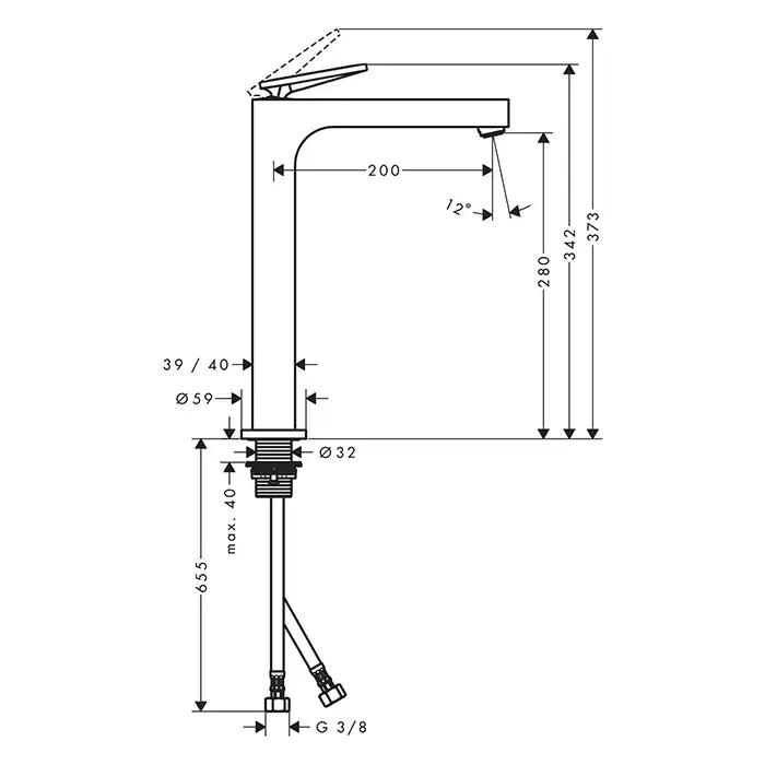 Высота излива, см