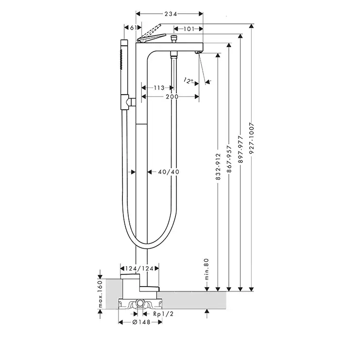 Axor Citterio Смеситель для ванны напольный, с рычаговой рукояткой, цвет: полированный черный хром 39471330