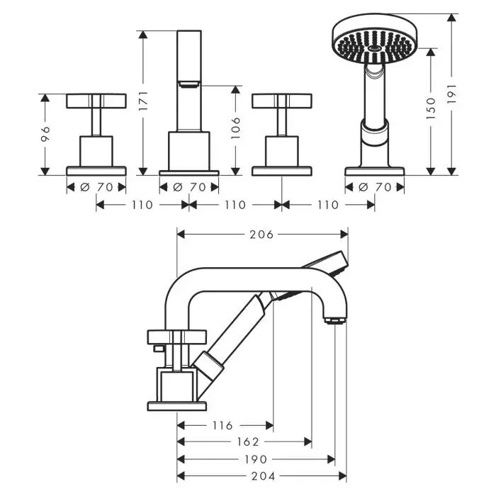 Axor Citterio Смеситель на борт ванны, с ручным душем, внешняя часть, цвет: хром 39445000