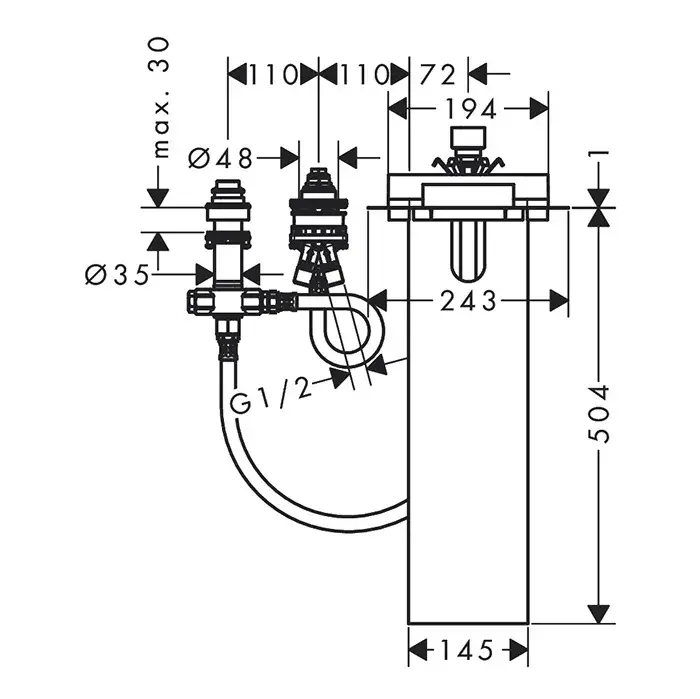 Axor Edge Скрытая часть однорычажного смесителя на 3 отверстия, на край ванны 15487180