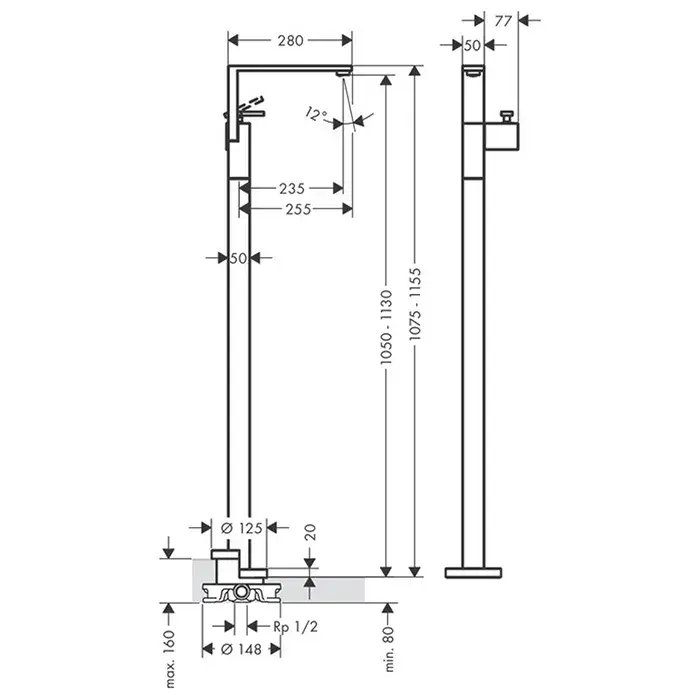 Axor Edge Смеситель для раковины напольный, внешняя часть, с дон. клапаном, цвет: полир. черный хром 46040330