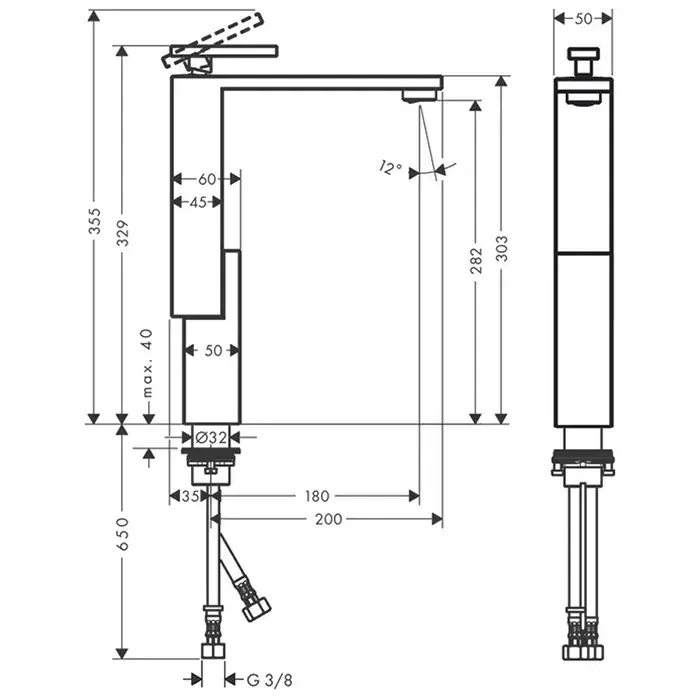 Высота излива, см