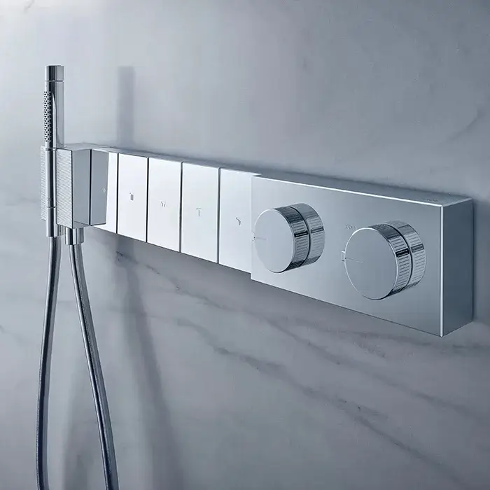 Axor Edge Термостат для ванны встраиваемый, 5 потребителя, лейка, шланг, внешняя часть, цвет: хром 46730000