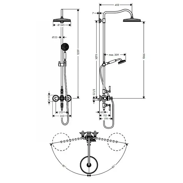 Axor Montreux Душевая стойка: термостат, верхний душ 24 см, лейка, цвет: хром 16572000