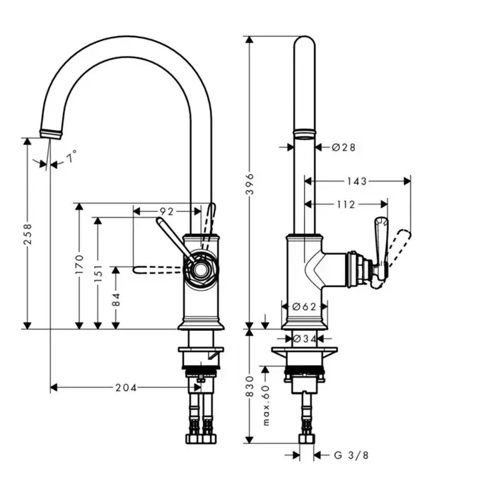 Соединительные шланги G ⅜, Регулируемое ограничение температуры