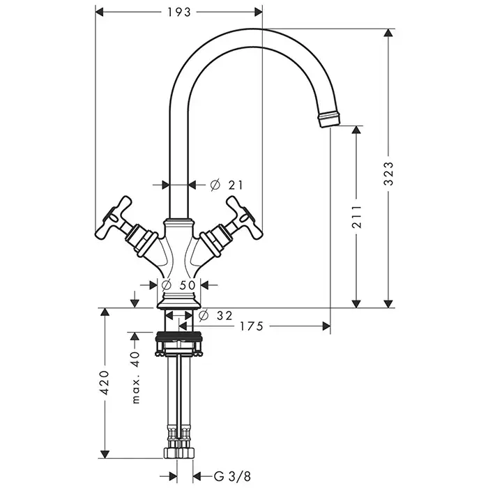 Высота излива, см