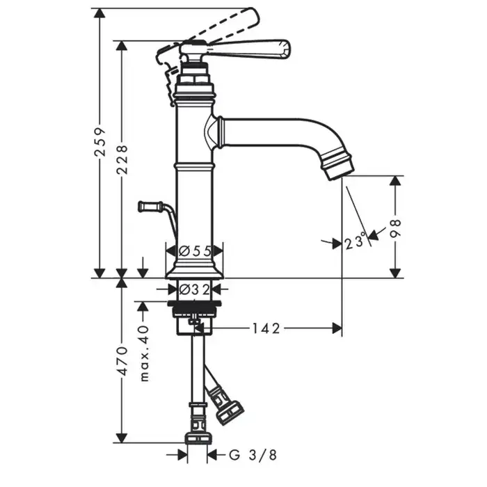 Высота излива, см
