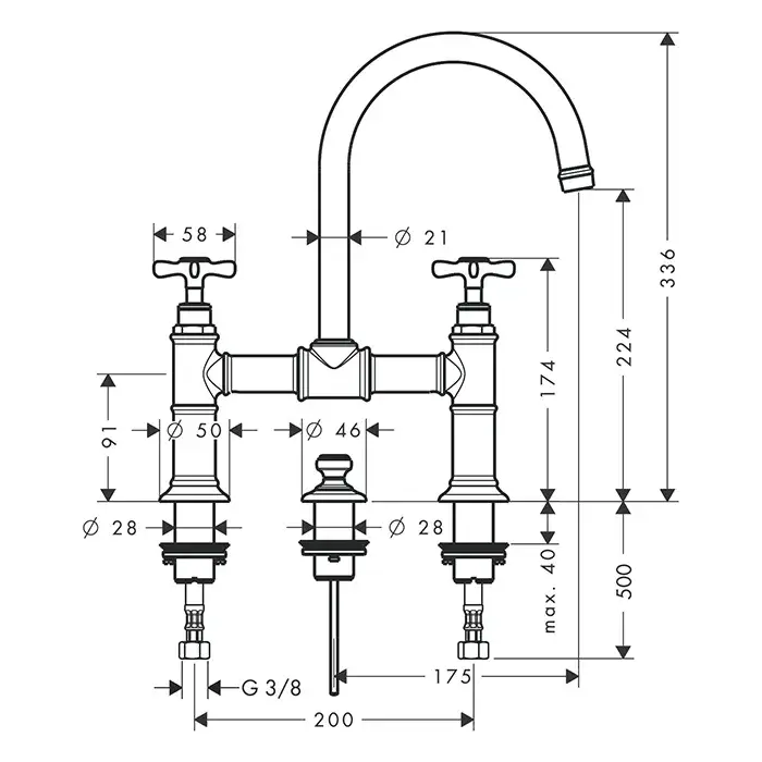 Axor Montreux Смеситель для раковины на 3 отверстие с донным клапаном, цвет: шлифованная латунь 16510950
