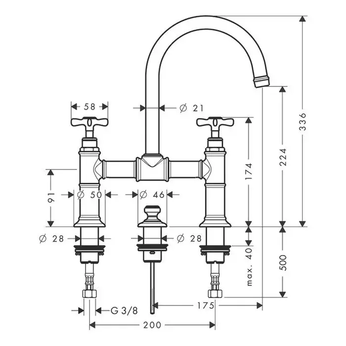 Axor Montreux Смеситель для раковины на 3 отверстие с донным клапаном, цвет: полированное золото 16510990