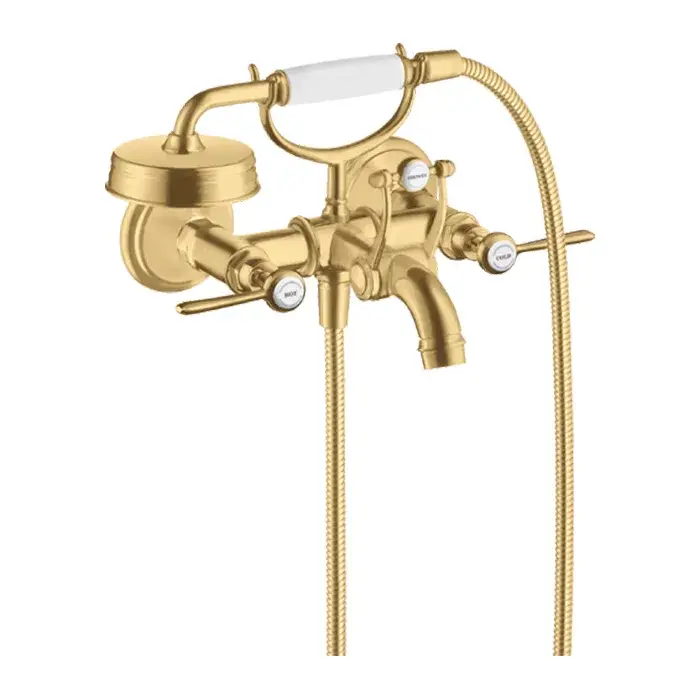 Axor Montreux Смеситель для ванны, 2 рычага, ручной душ, шланг, излив, цвет: шлифованное золото 16551250