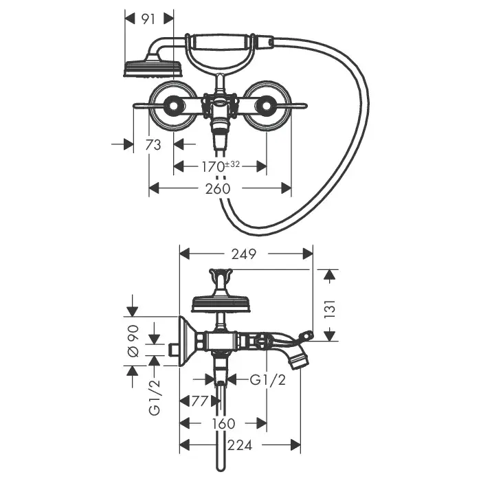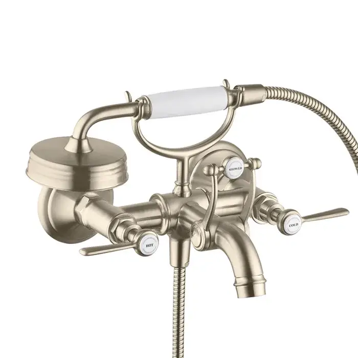 Axor Montreux Смеситель для ванны, 2 рычага, ручной душ, шланг, излив, цвет: шлифованный никель 16551820