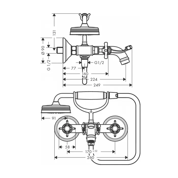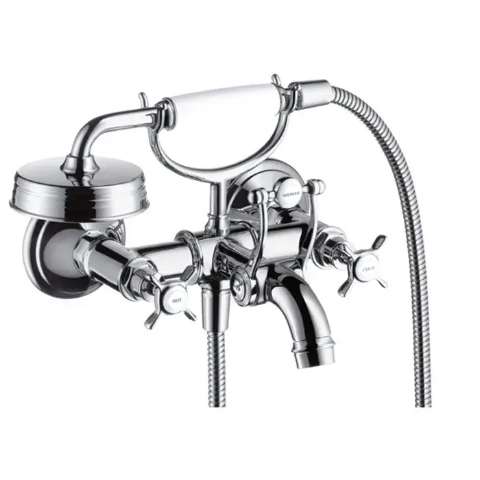 Axor Montreux Смеситель для ванны, 2 вентиля, ручной душ, шланг, излив 22,4 см, цвет: хром 16540000