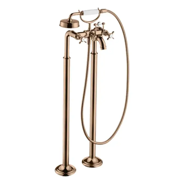 Axor Montreux Смеситель для ванны напольный с двумя крестообр. рукоятками, цвет: полир. роз. золото 16547300