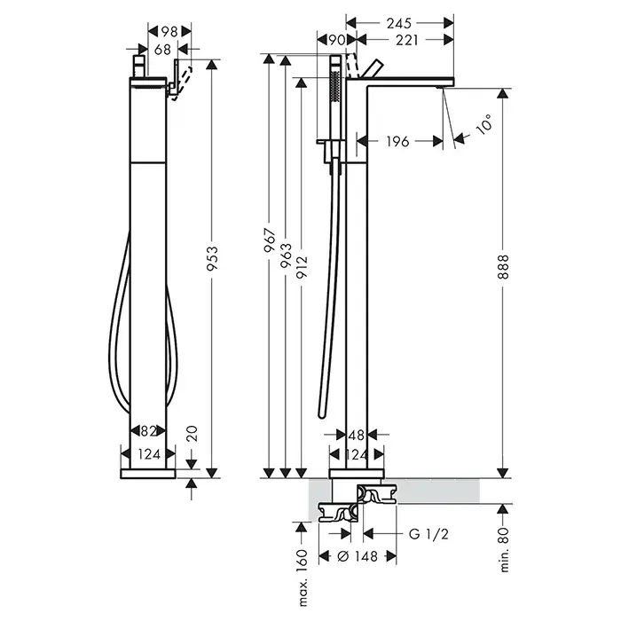 Axor MyEdition Смеситель для ванны напольный, однорычажный, без панели, цвет: нержавеющая сталь 47442800