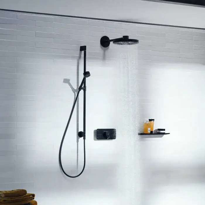 Axor One Душевой гарнитур: лейка 1 вид струи EcoSmart, штанга 96 см, шланг, цвет: матовый черный 48791670
