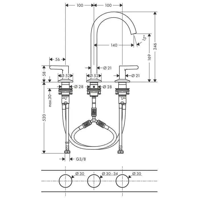 Axor One Смеситель для раковины двухвентильный на 3 отверстия с донным клапаном, цвет: хром 48050000