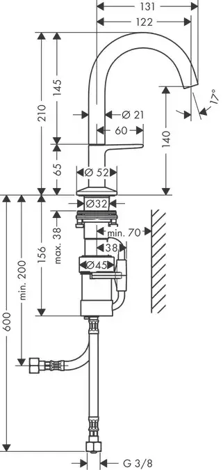 Высота излива, см