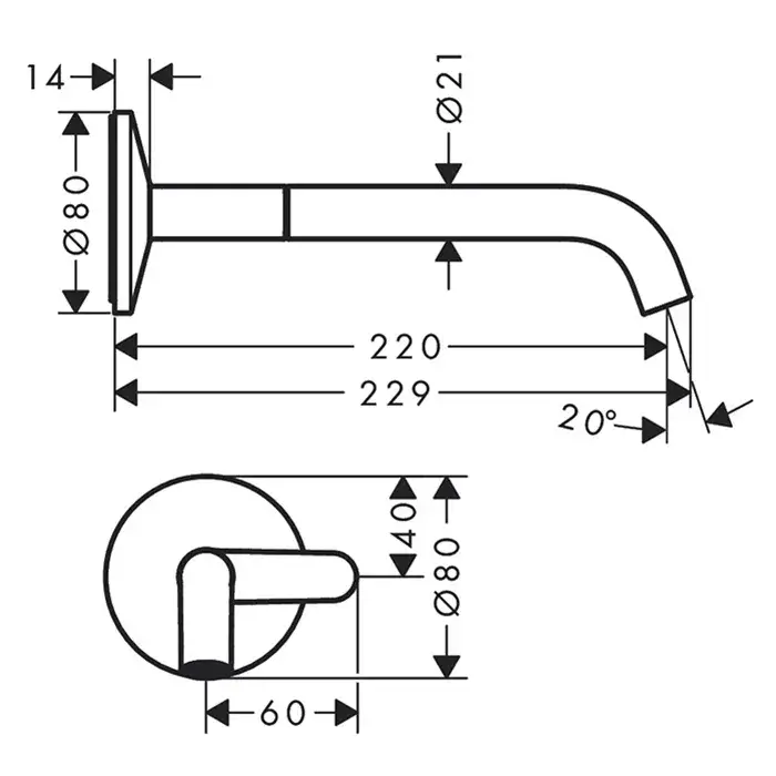 Длина излива, см