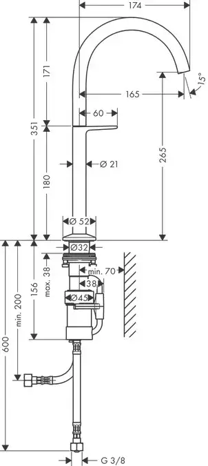 Высота излива, см