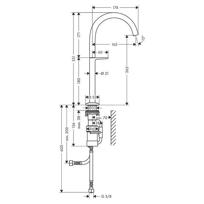 Высота излива, см