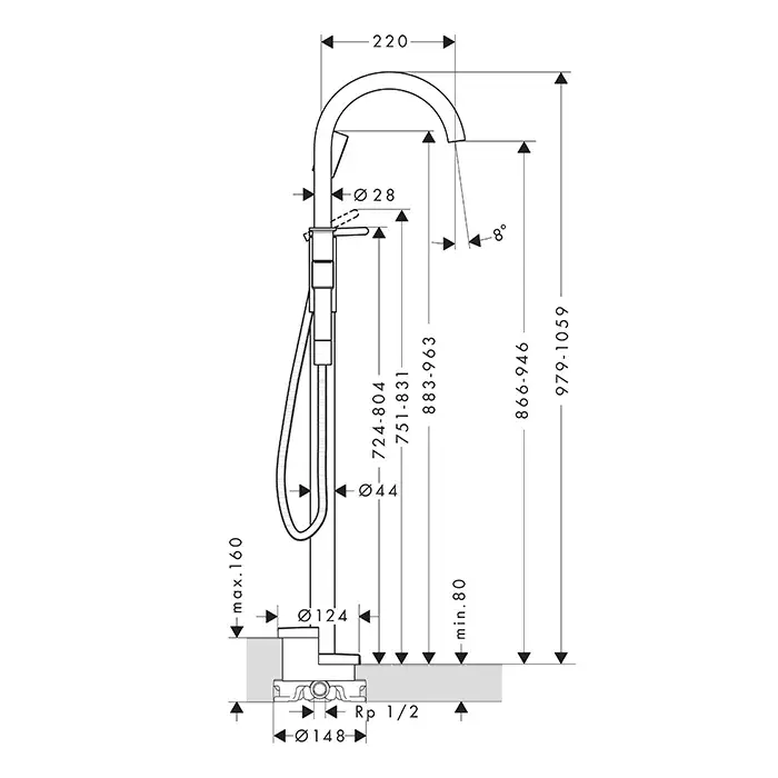 Высота излива, см