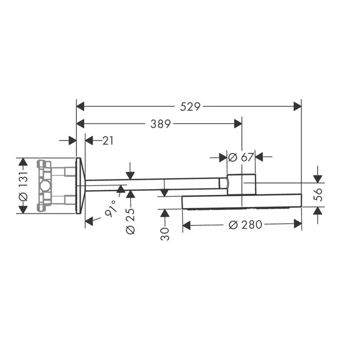 Размер верхнего душа, см