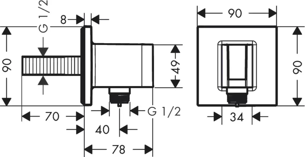 Axor Porter Шланговое подключение с держателем, квадратное, цвет: хром 36734000