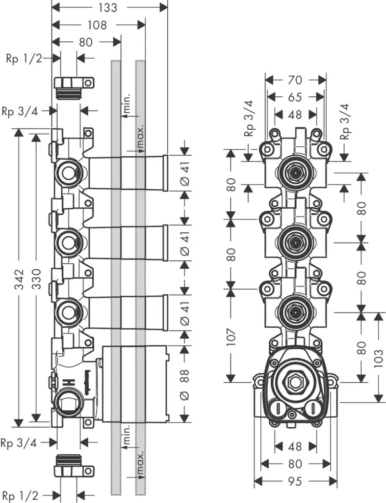 Axor Shower Collection Скрытая часть термостата для душа, 3 потребителя 10750180