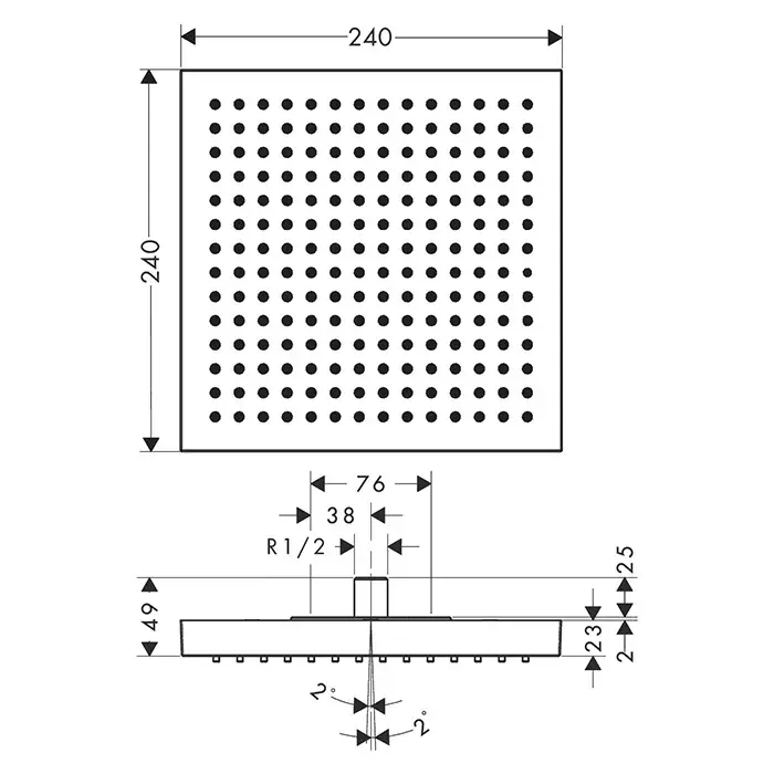 Размер верхнего душа, см