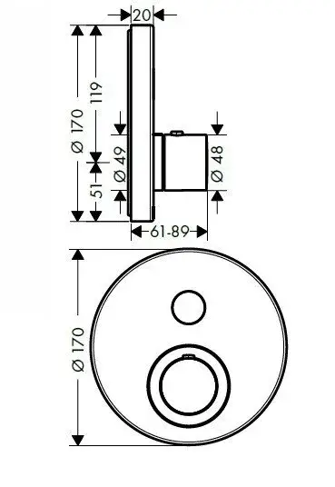 Axor Shower Select Термостат для душа встраиваемый, 1 потребитель, запорный вентиль, цвет: хром 36722000