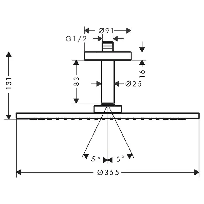 Axor Shower Solutions Верхний душ 35,5 см, 1 вид струи, кронштейн потолочный 10 см, цвет: хром 26035000