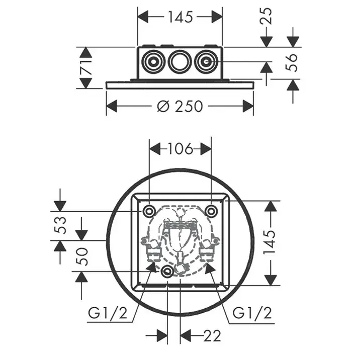 Axor Shower Solutions Верхний душ встраиваемый в потолок 25 см, 1 вид струи, цвет: хром 35287000
