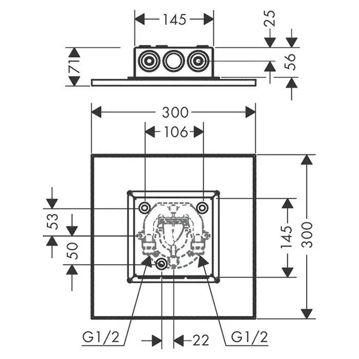 Axor Shower Solutions Верхний душ встраиваемый в потолок 30x30 см, 2 вида струи, цвет: хром 35321000