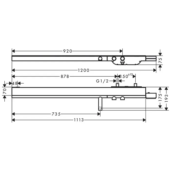 Axor Showers Термостат для ванны 120 см, с зеркальной полочкой, излив, цвет: шлифованный никель 45421820