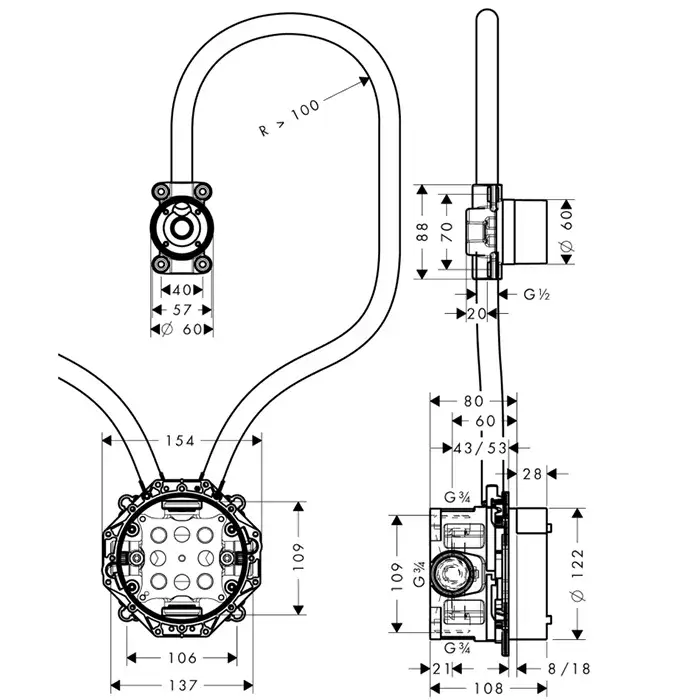Axor Скрытая часть запорного/переключающего вентиля Trio 16982180