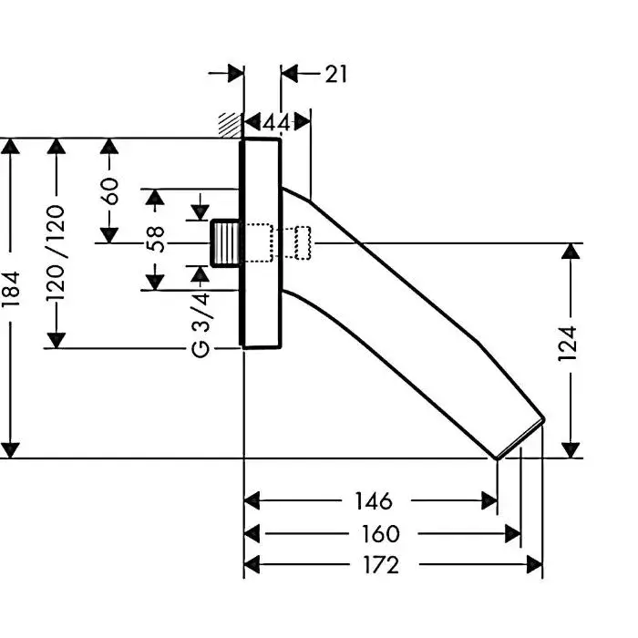 Axor Starck Organic Излив настенный для ванны 16 см, цвет: хром 12417000